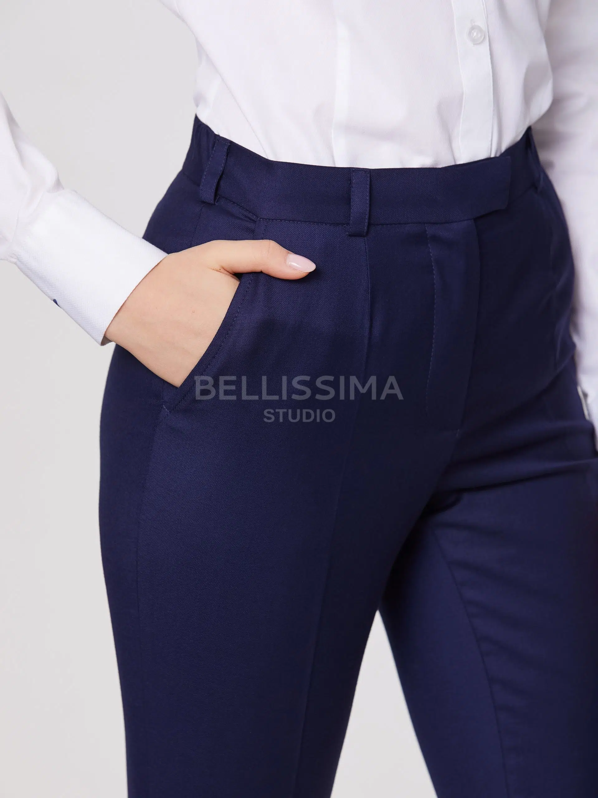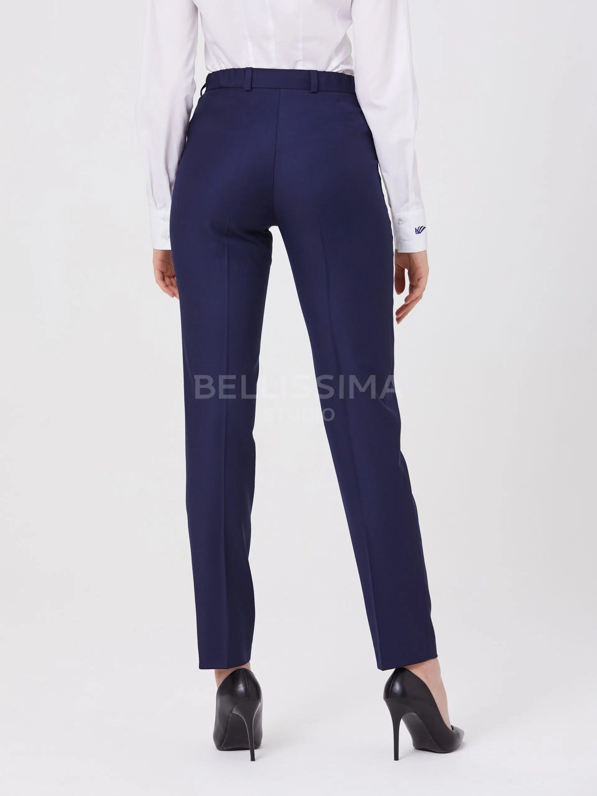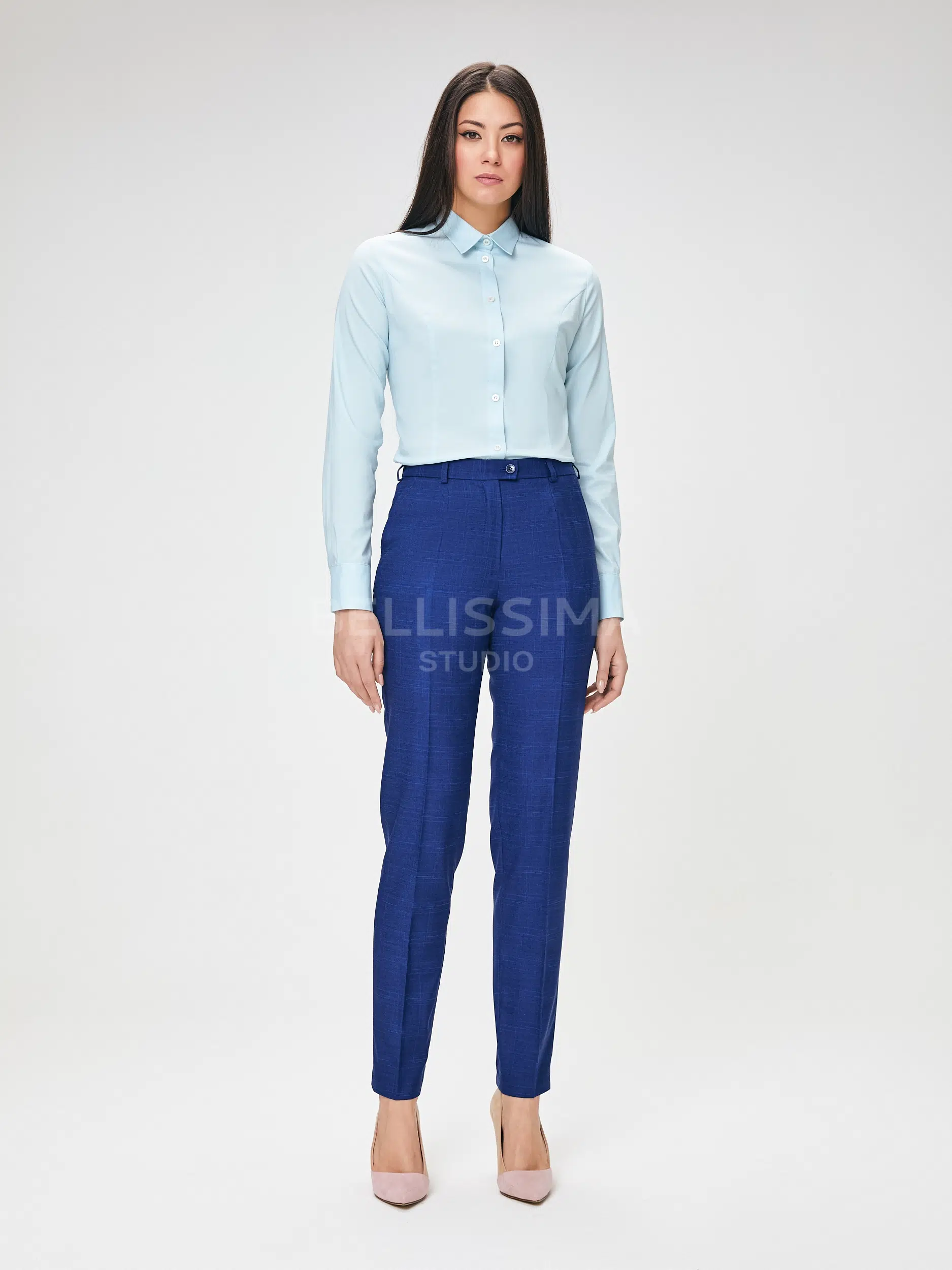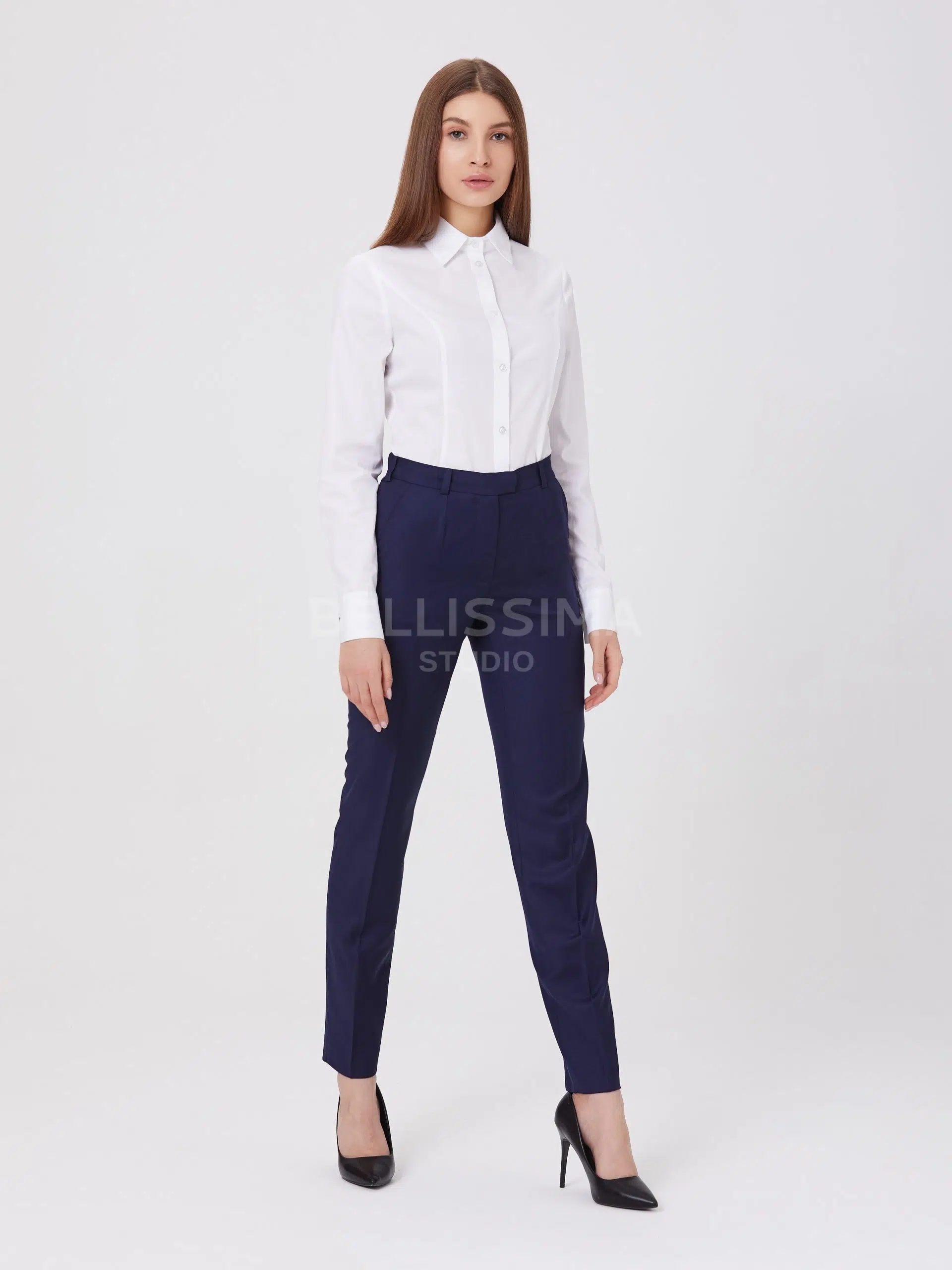 Брюки выполнены из эластичной, средней плотности костюмной ткани. Дышащий материал, малосминаемая ткань. Базовые брюки для любого случая со стрелками.