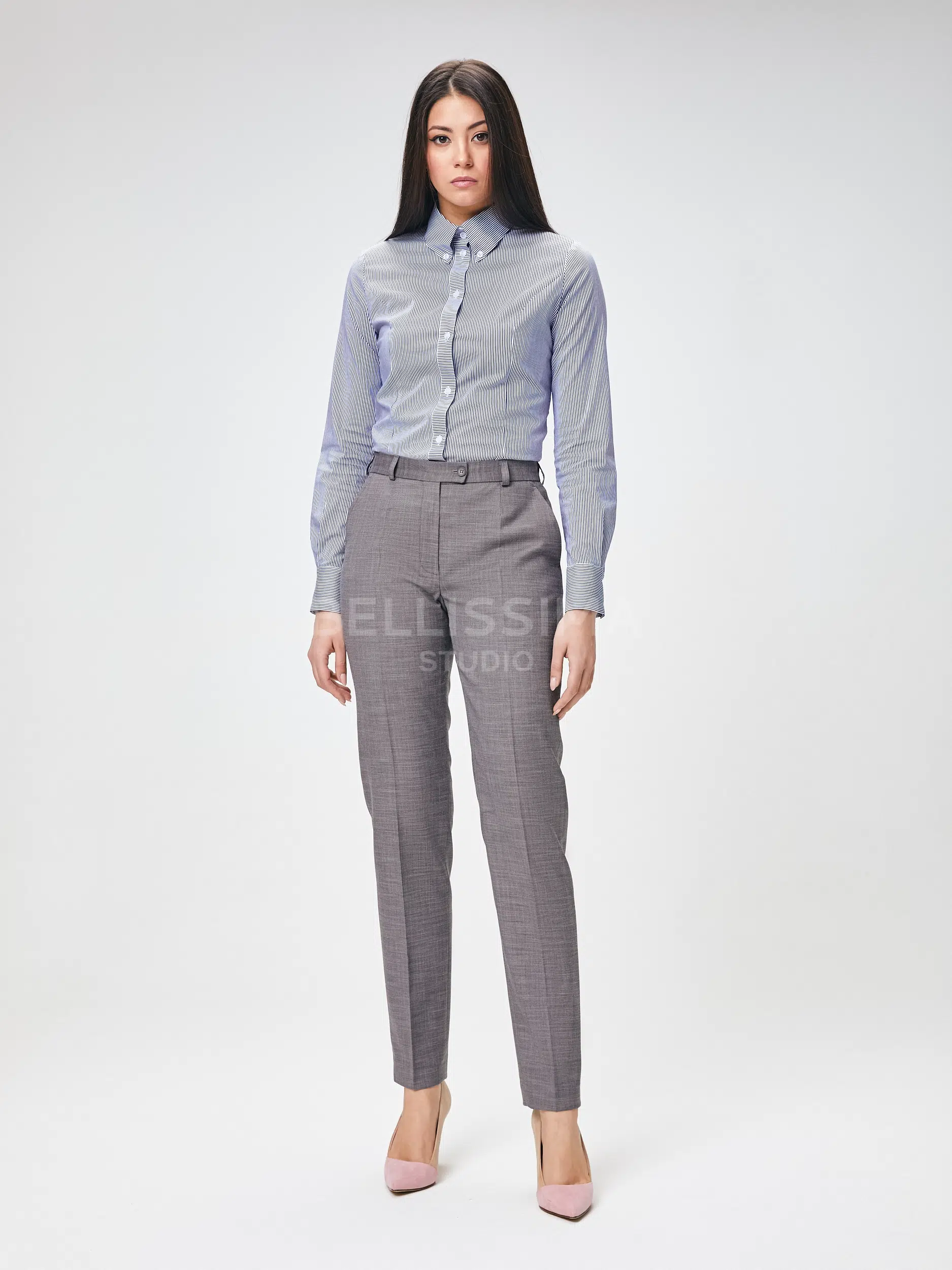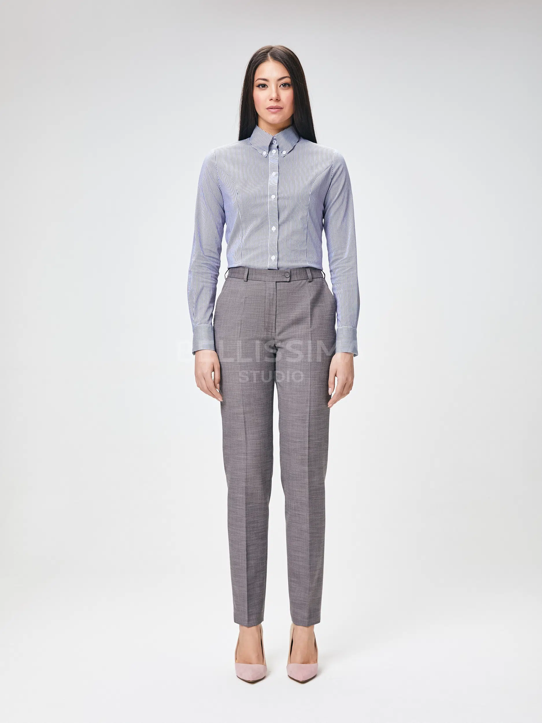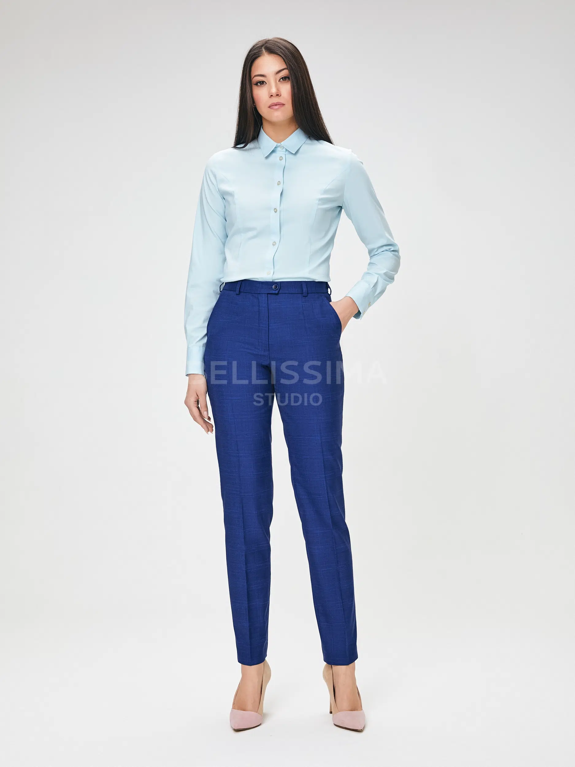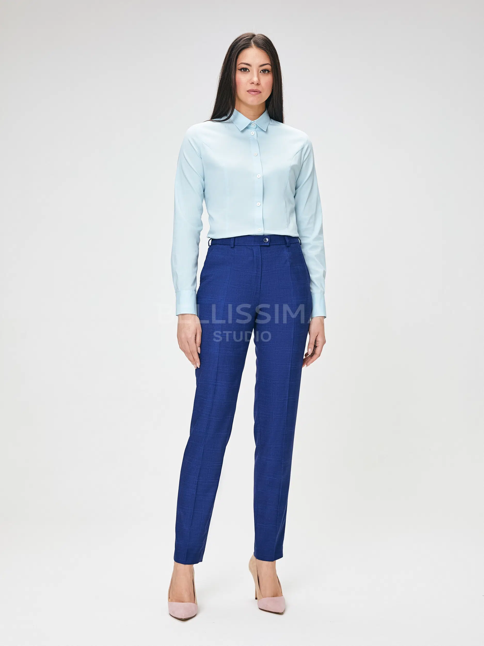Брюки выполнены из эластичной, средней плотности костюмной ткани. Дышащий материал, малосминаемая ткань. Базовые брюки для любого случая со стрелками.