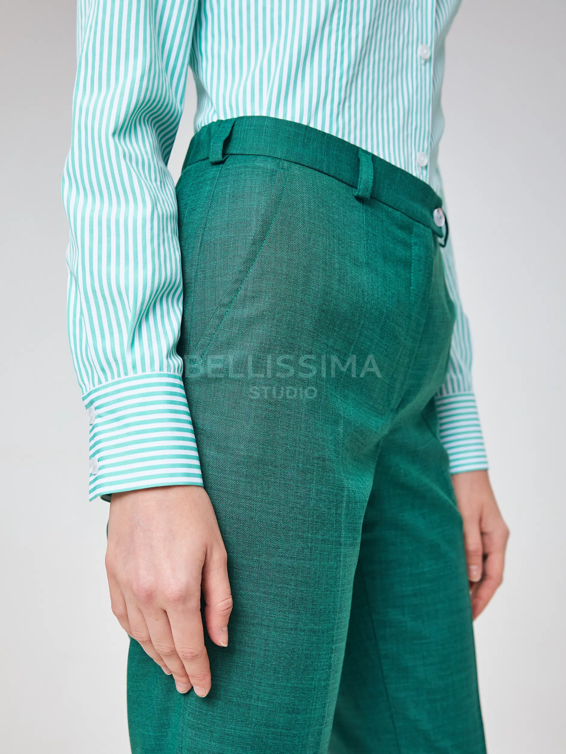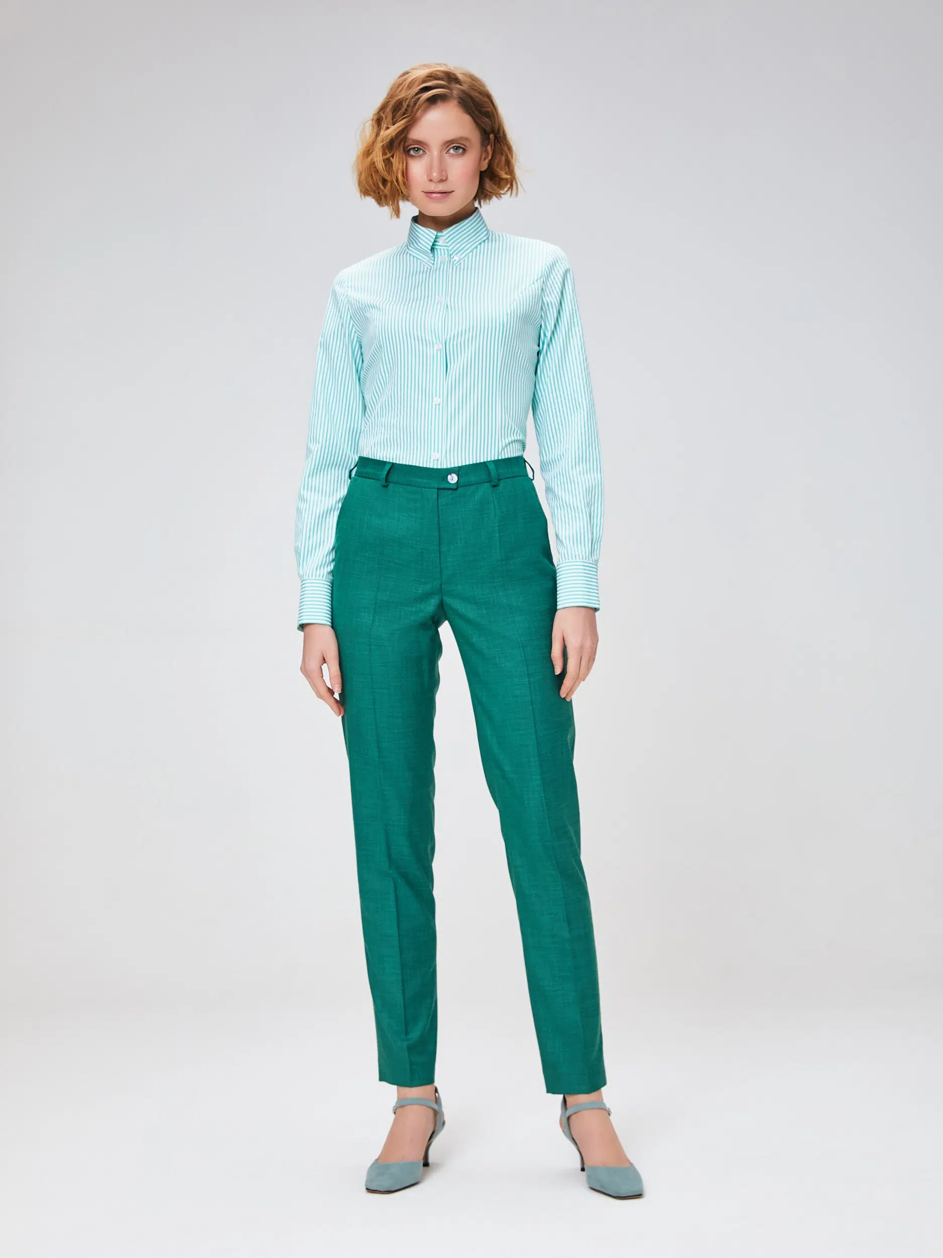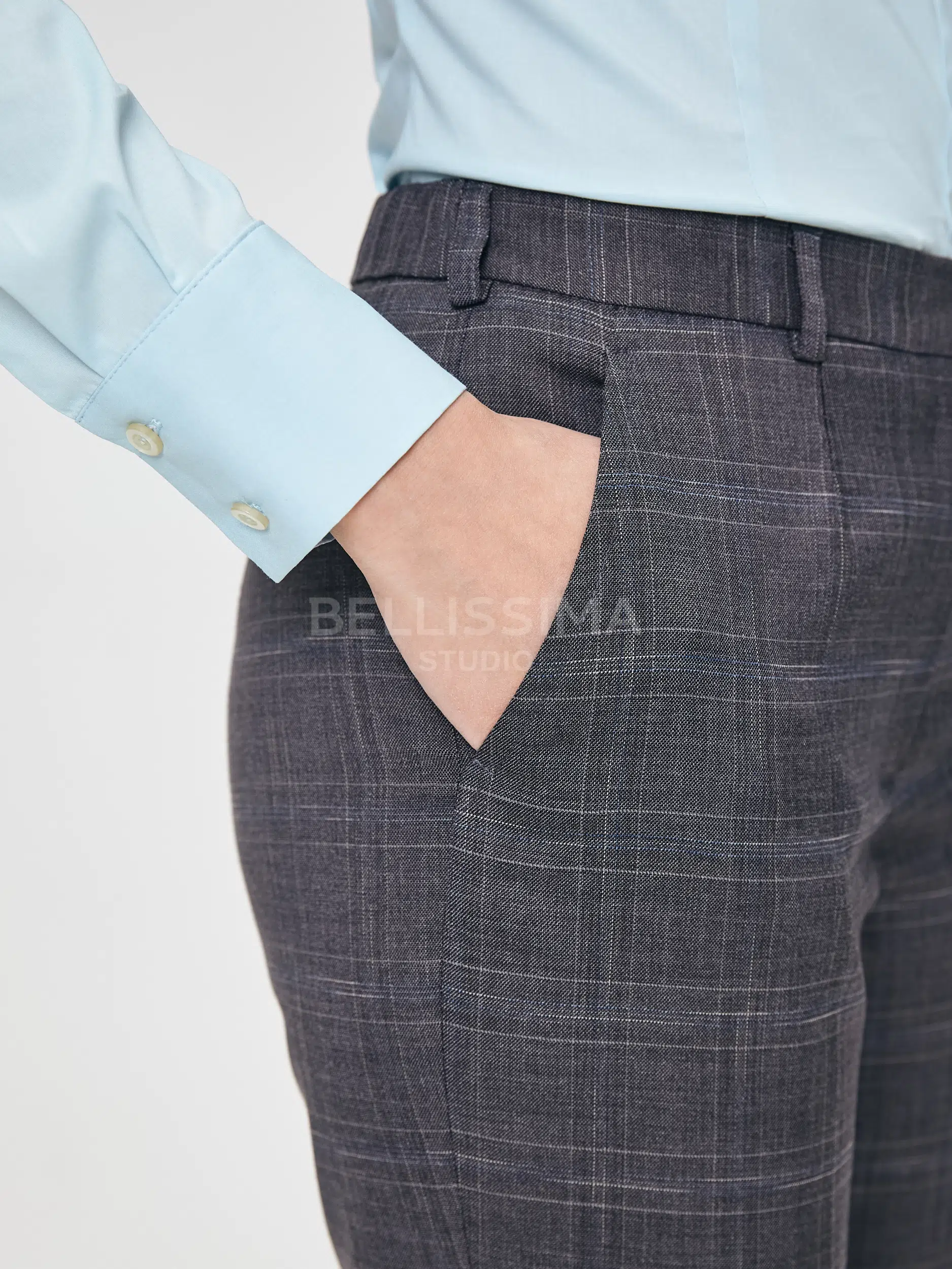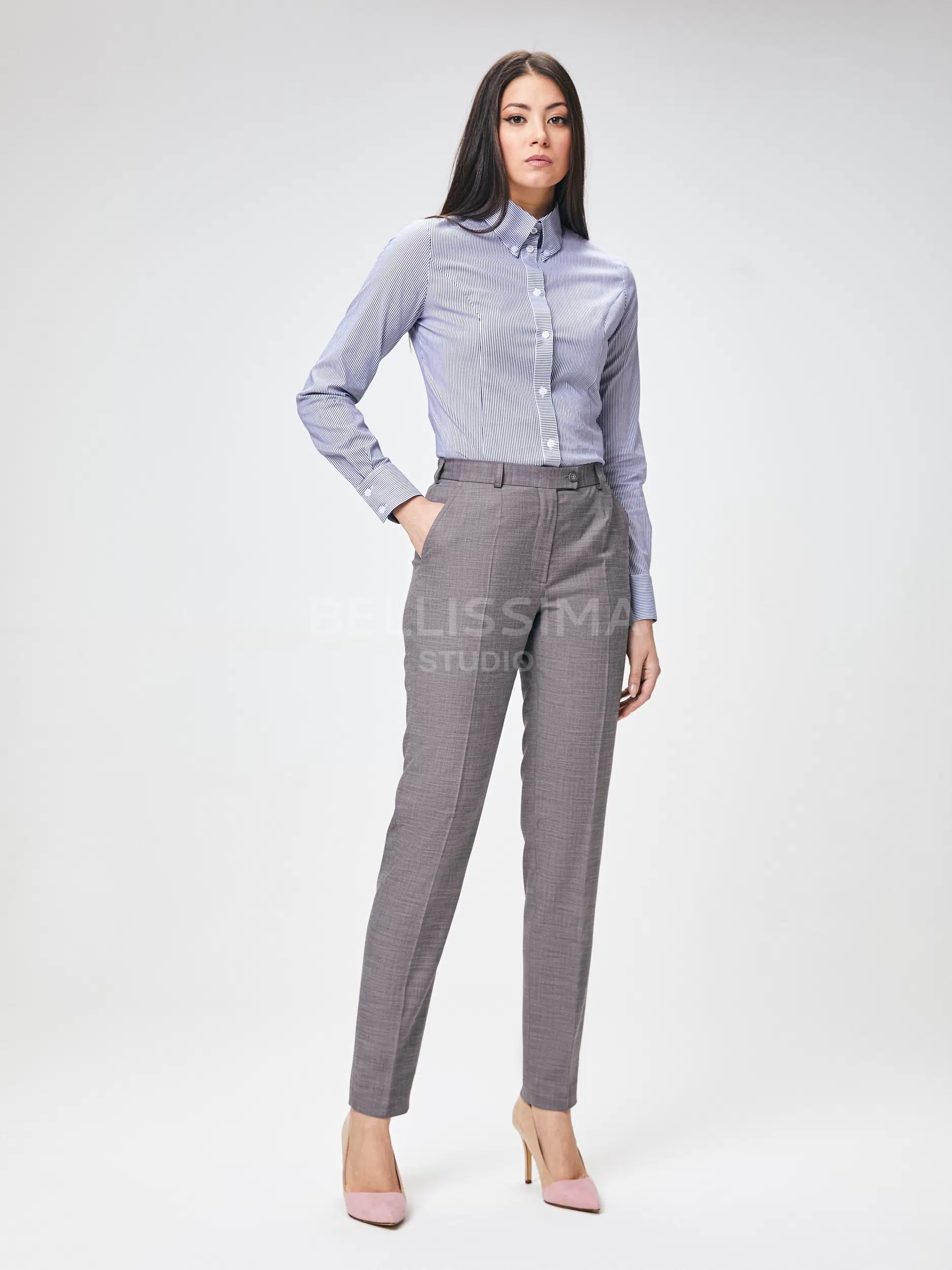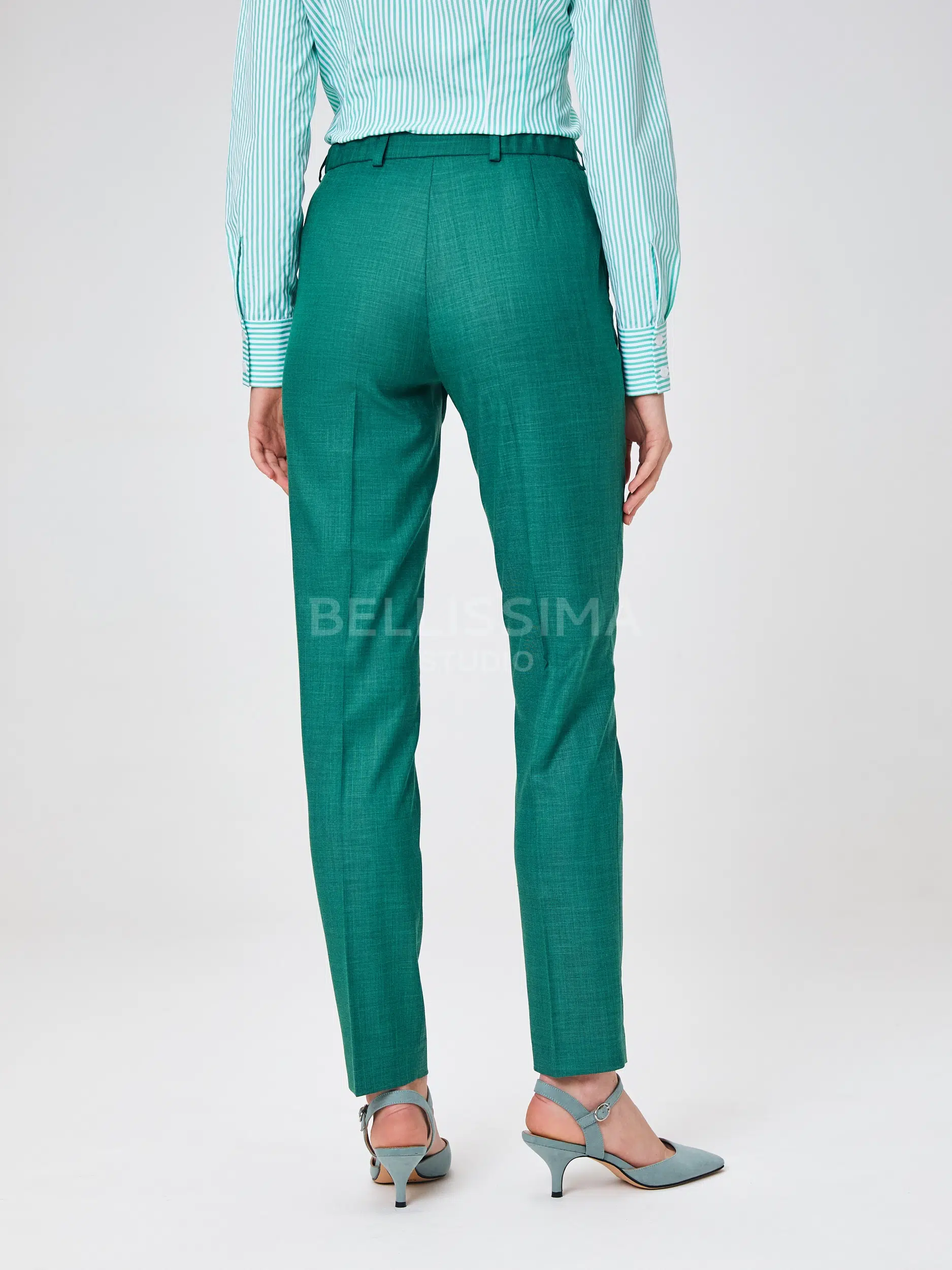 Брюки выполнены из эластичной, средней плотности костюмной ткани. Дышащий материал, малосминаемая ткань. Базовые брюки для любого случая со стрелками.