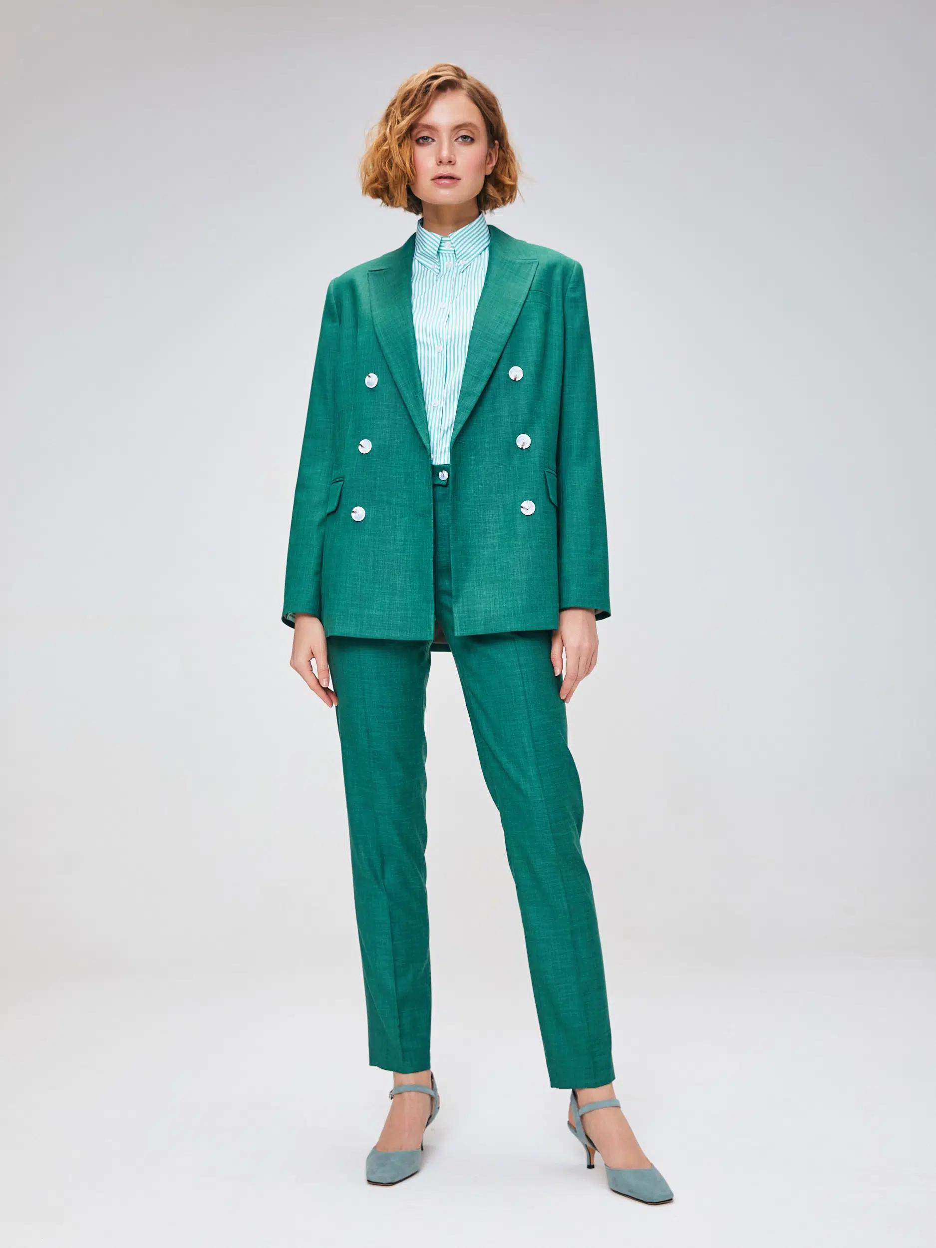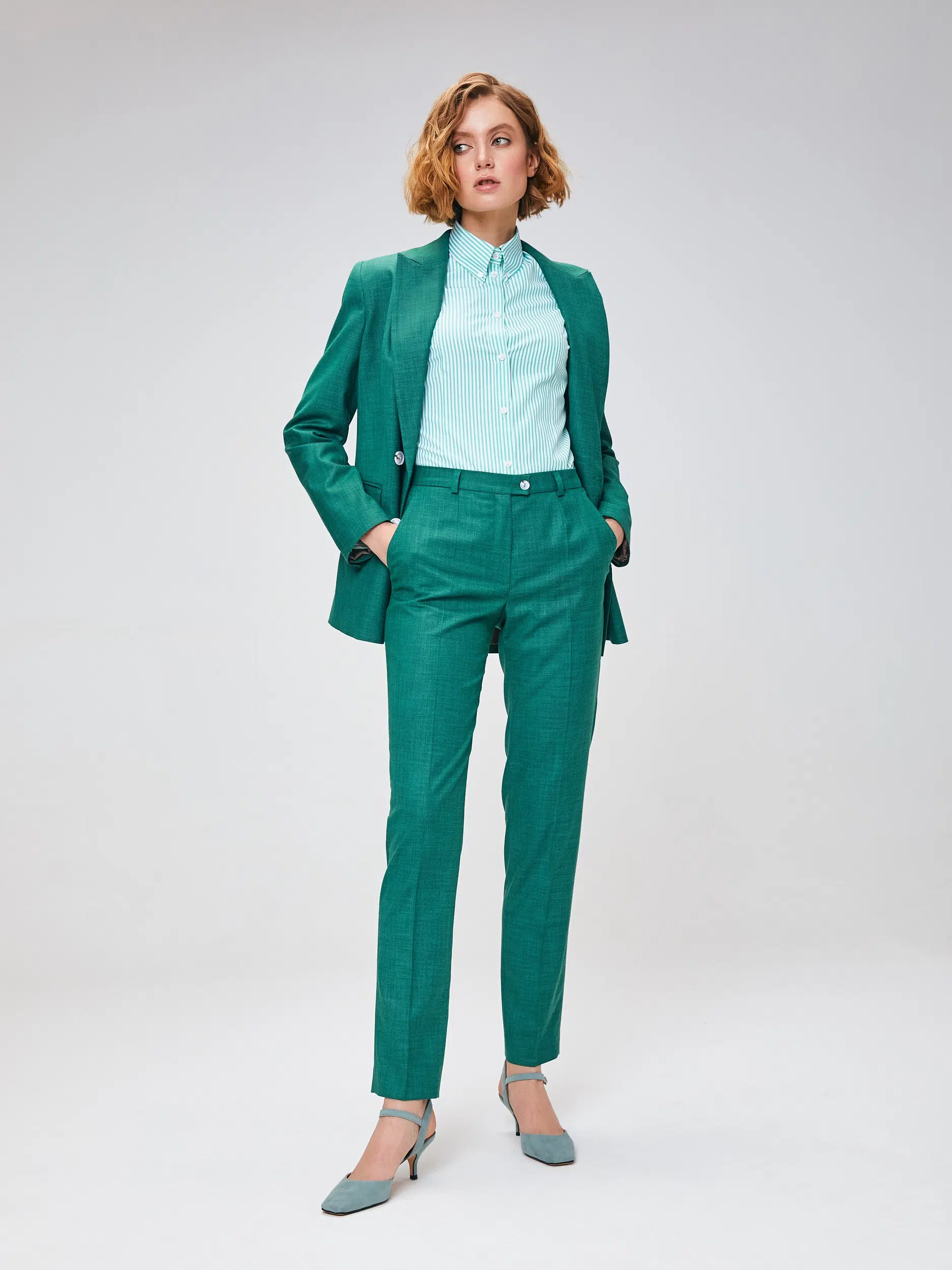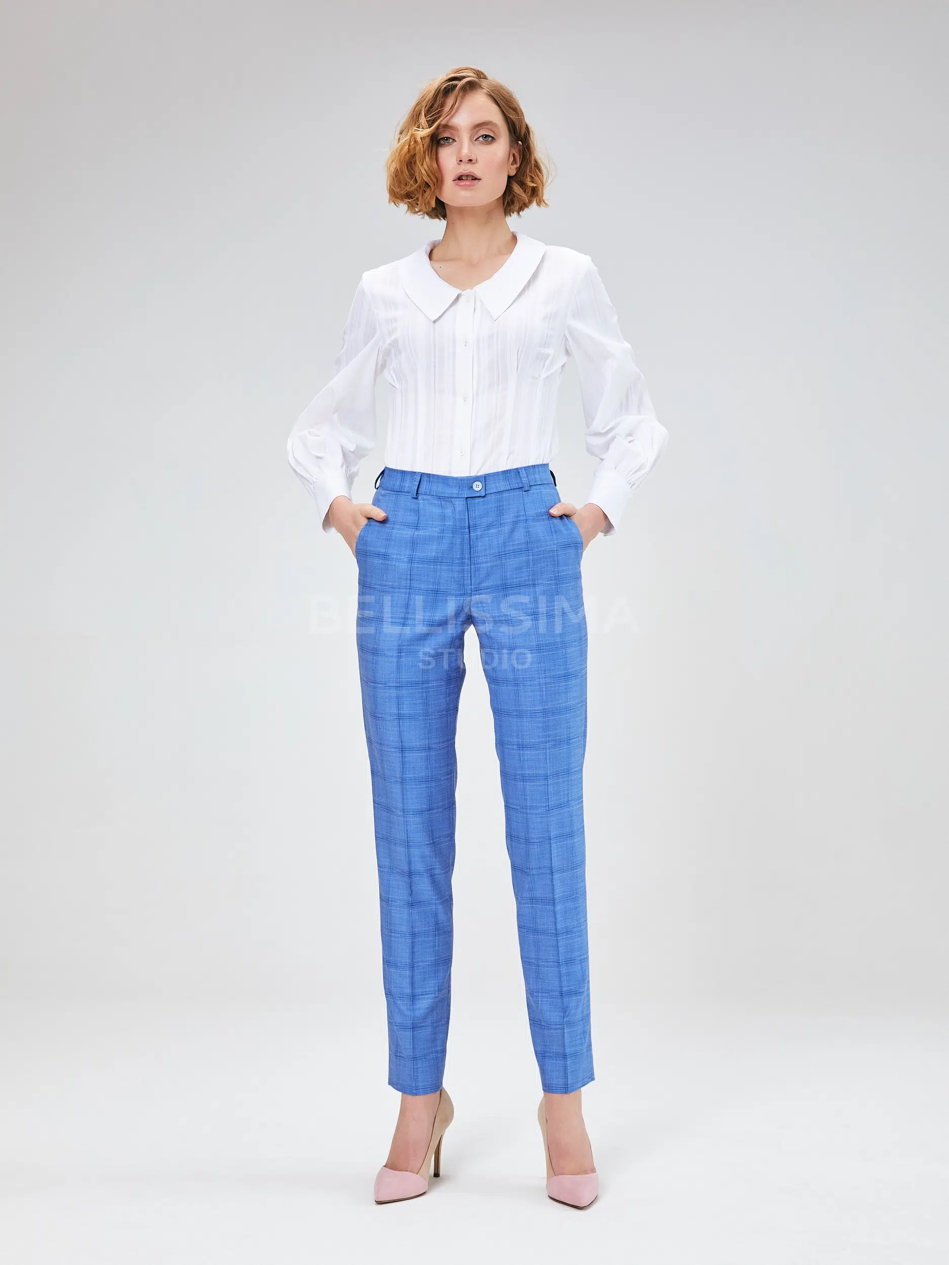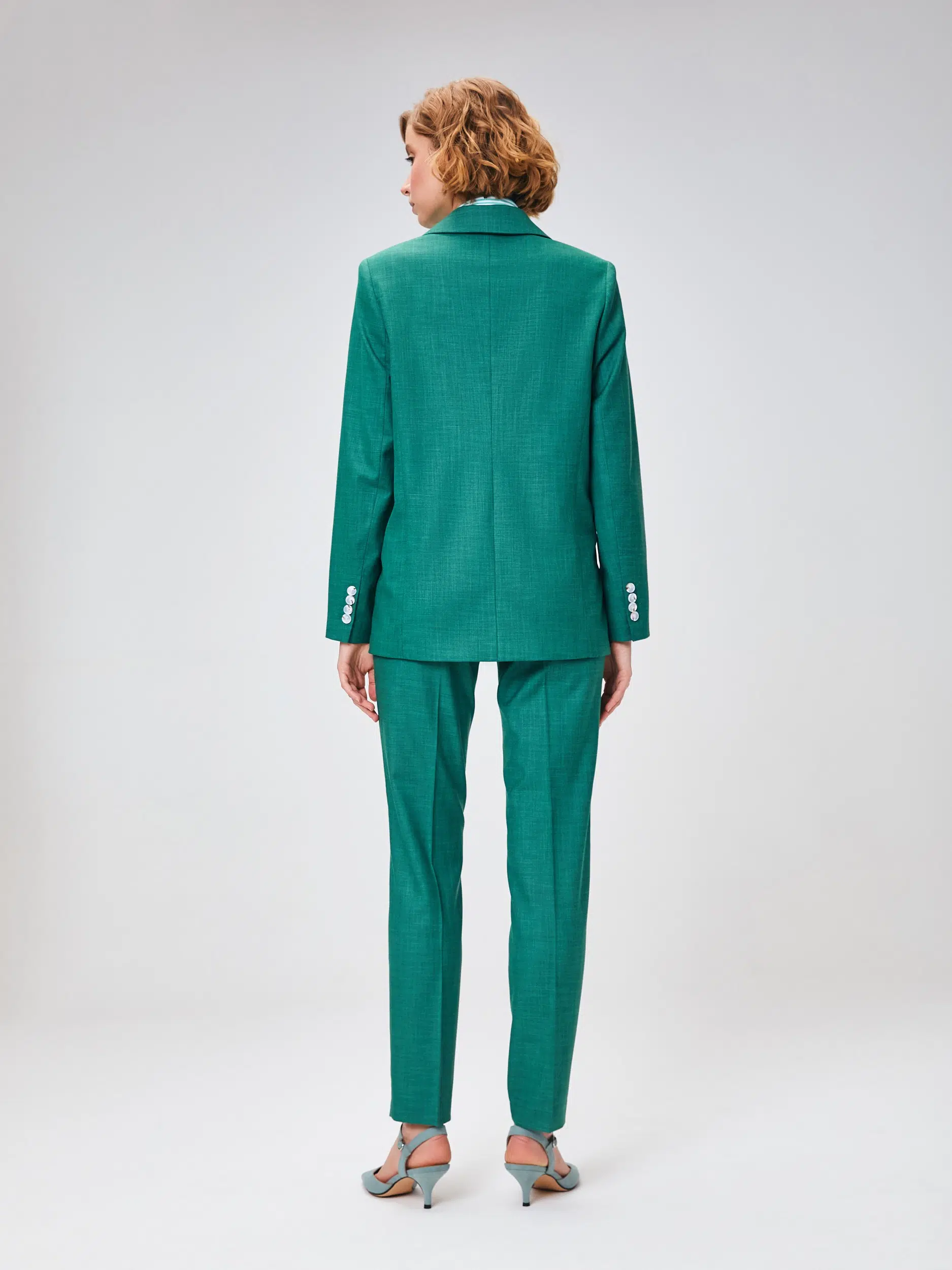 Брюки выполнены из эластичной, средней плотности костюмной ткани. Дышащий материал, малосминаемая ткань. Базовые брюки для любого случая со стрелками.