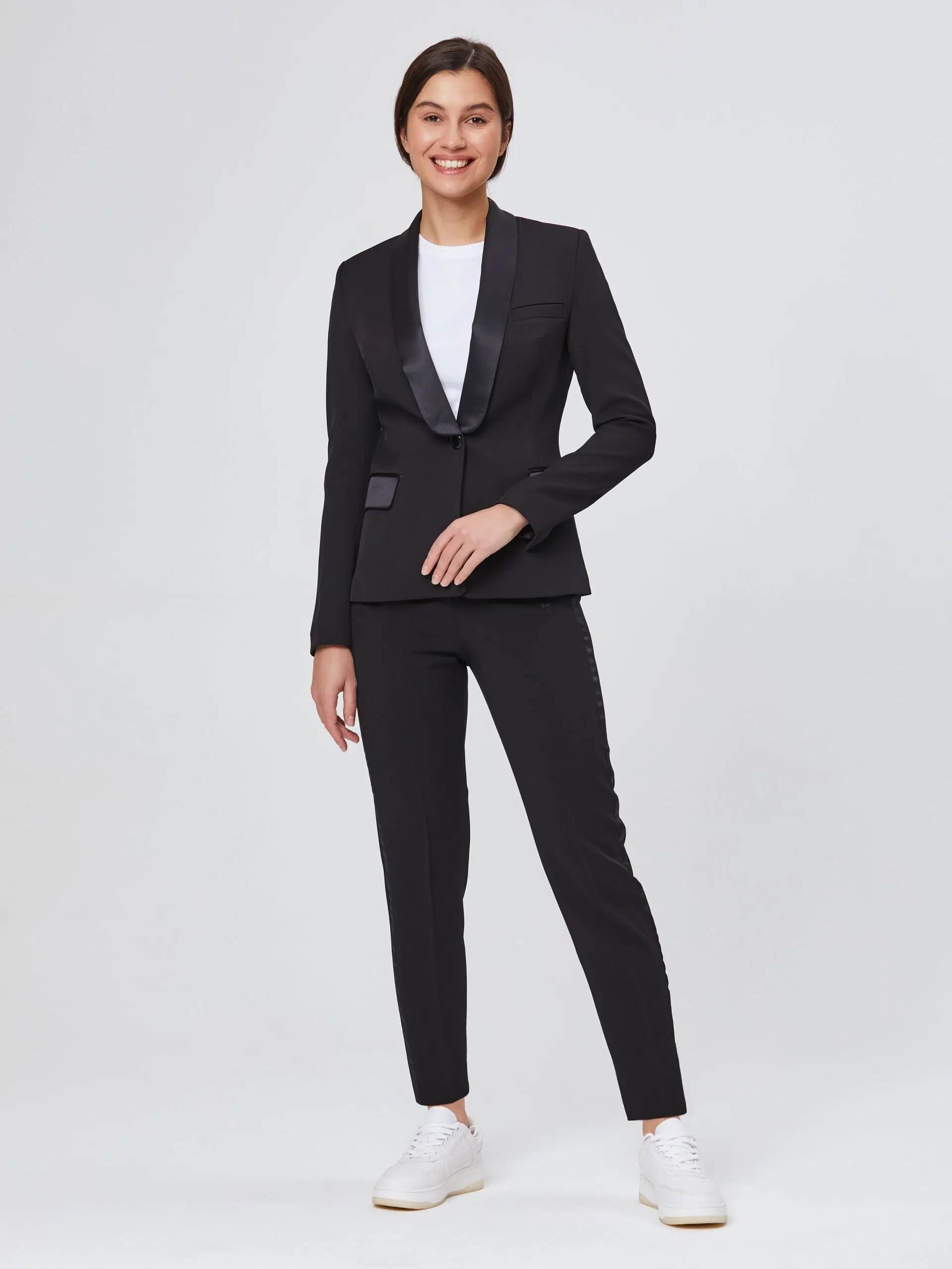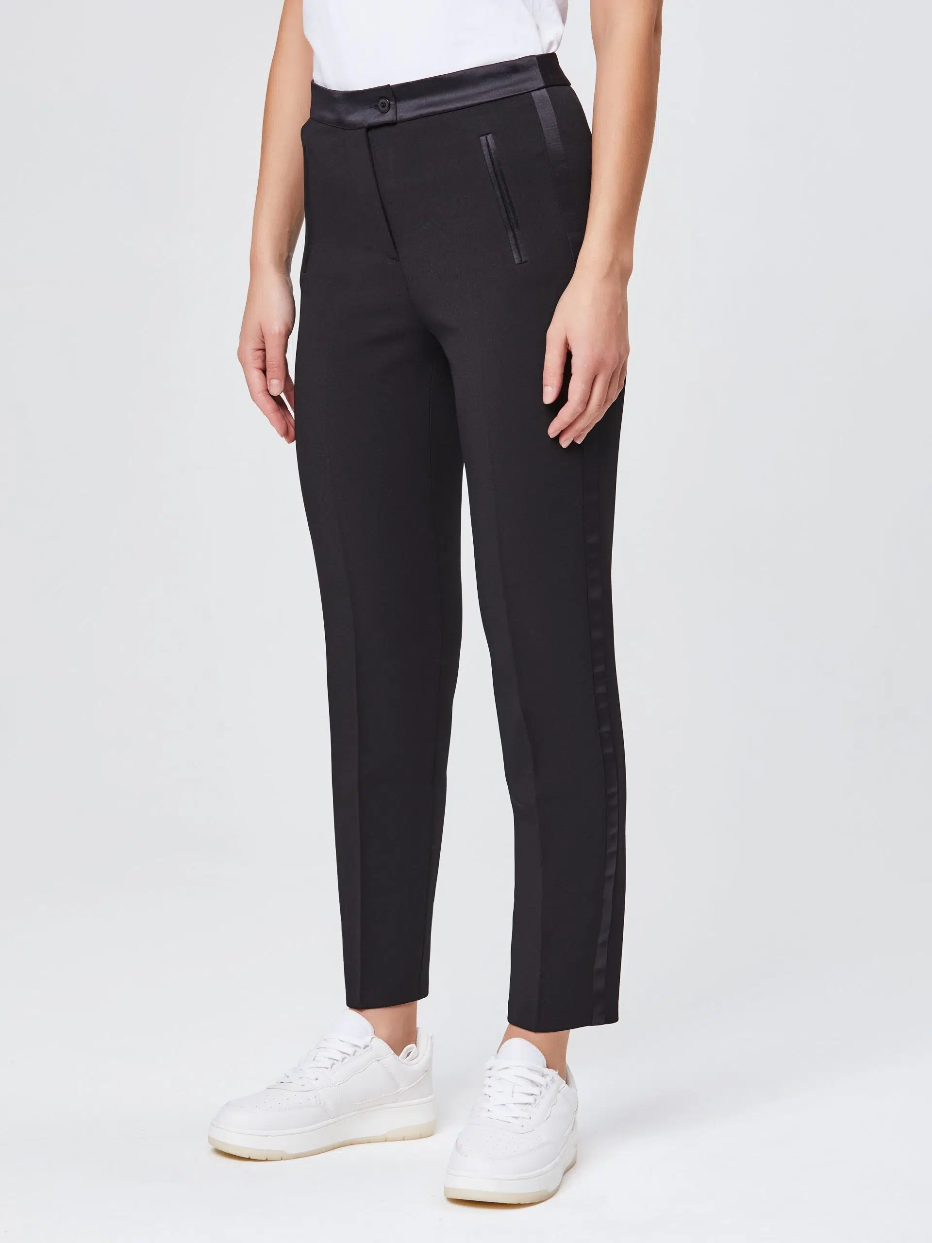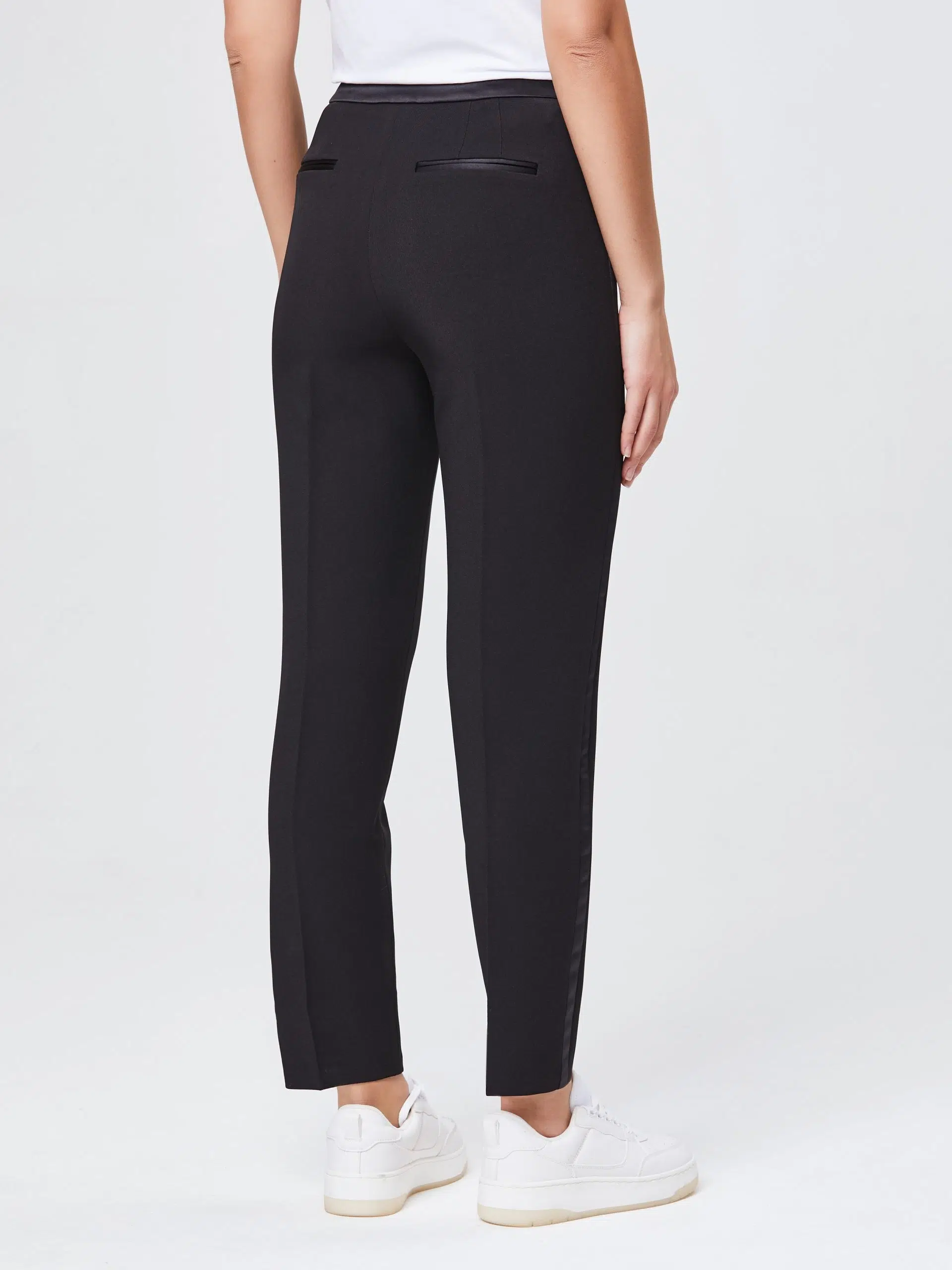 Брюки, зауженные к низу с лампасами из атласной ткани. Выполнены из эластичной, средней плотности костюмной ткани. Прекрасно подойдут для любого дресс-кода.