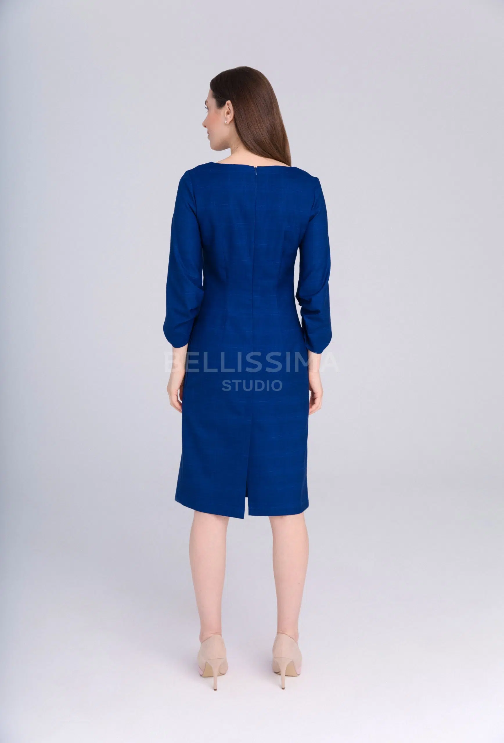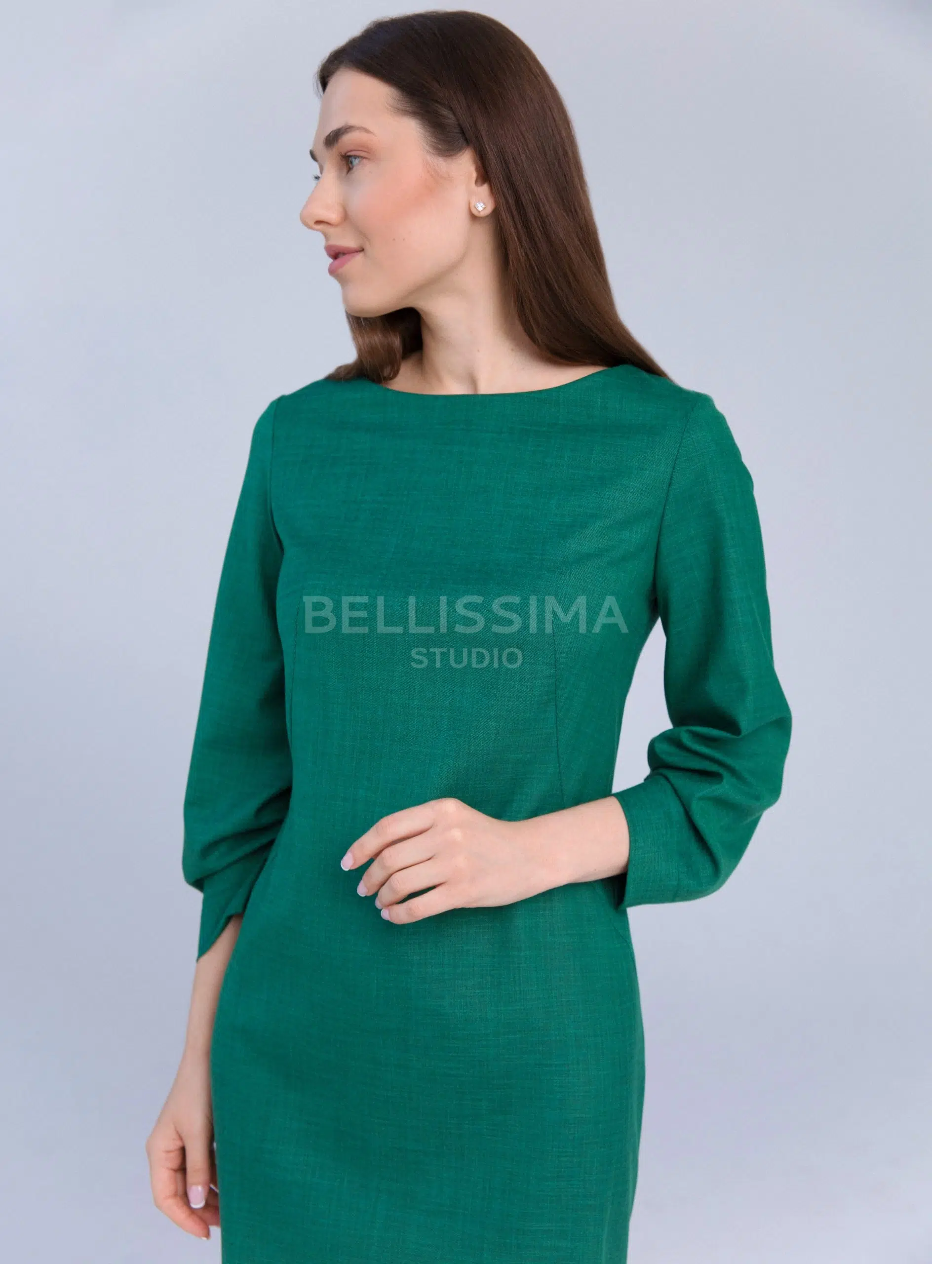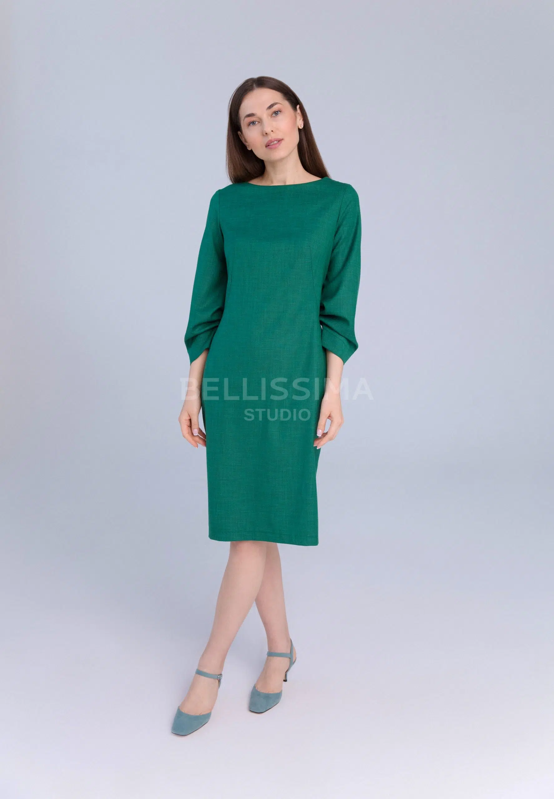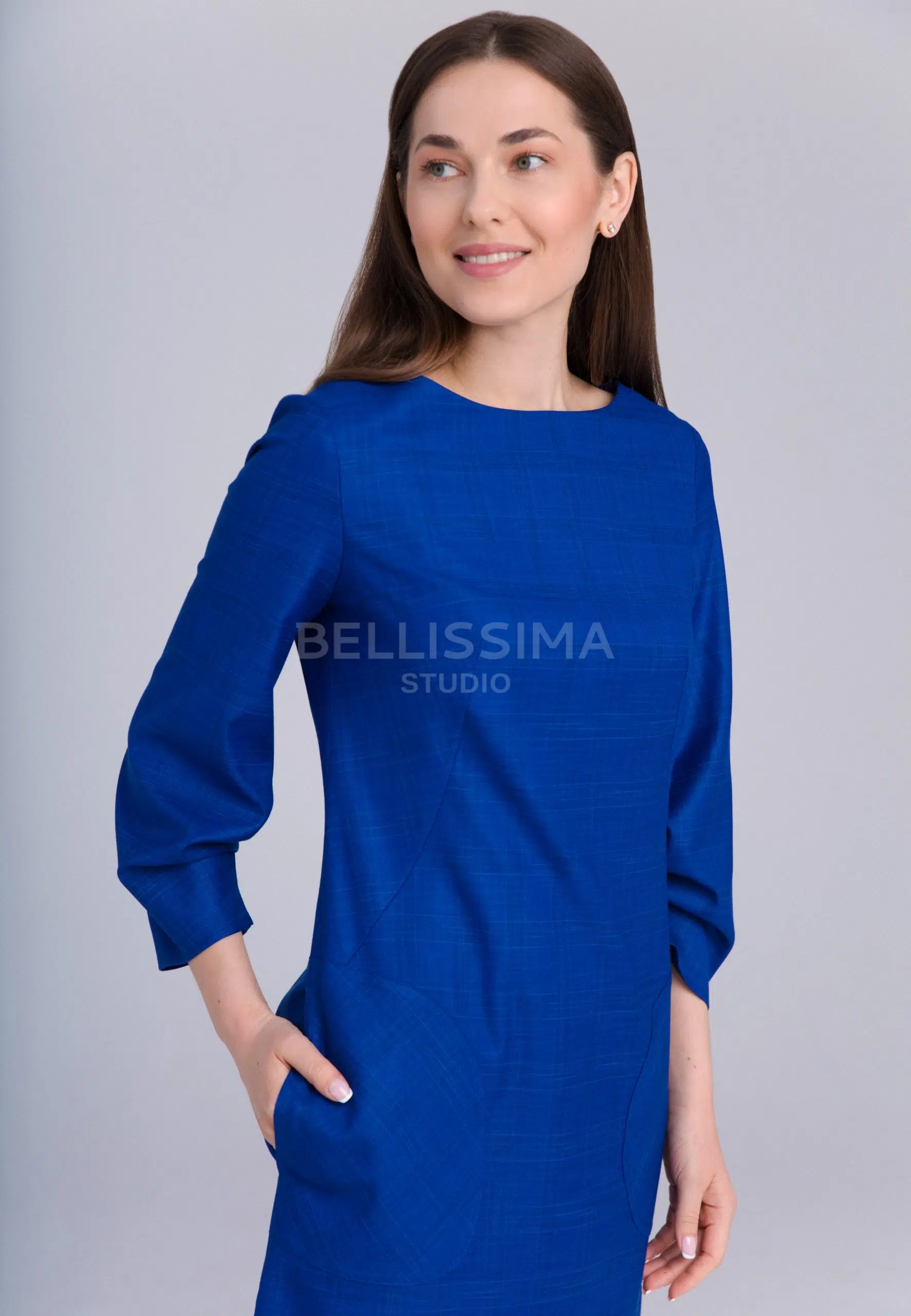 Платье полуприлегающего силуэта выполнено из эластичной, средней плотности костюмной ткани. Свободный силуэт и вытачки по бокам и спине обеспечат прекрасную посадку на любой фигуре.