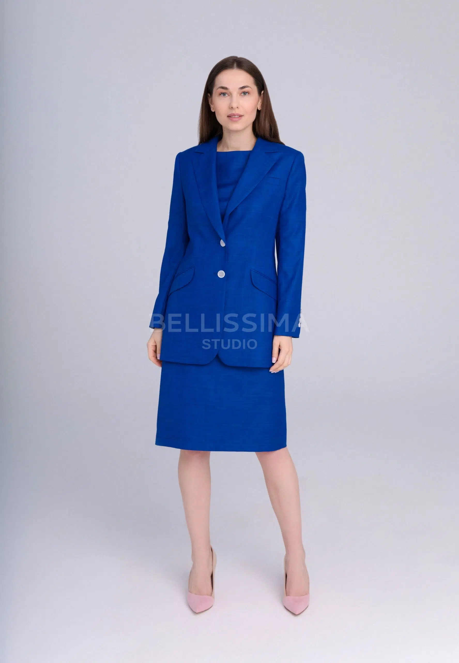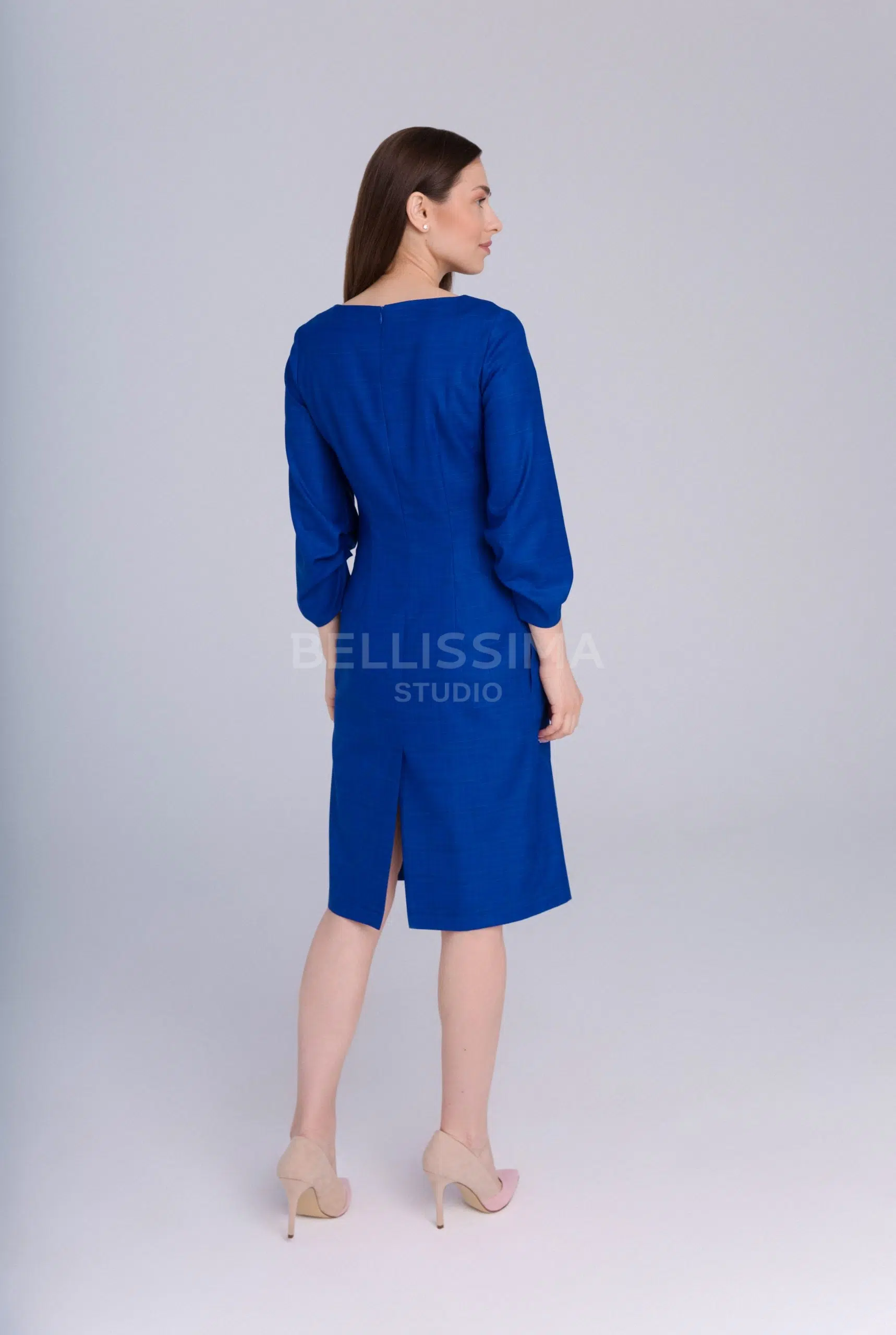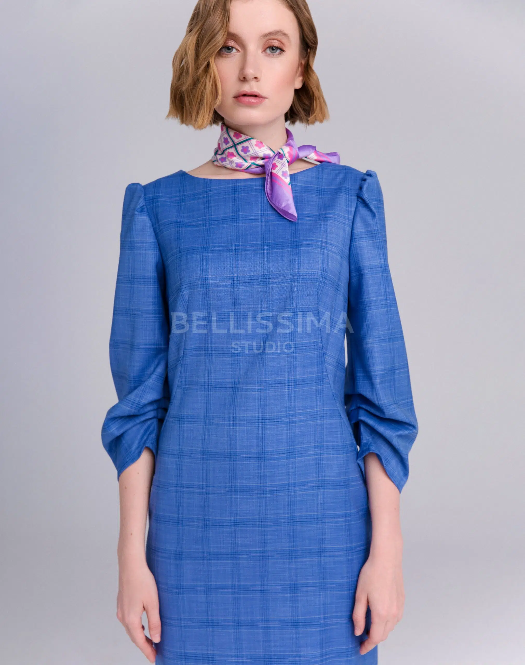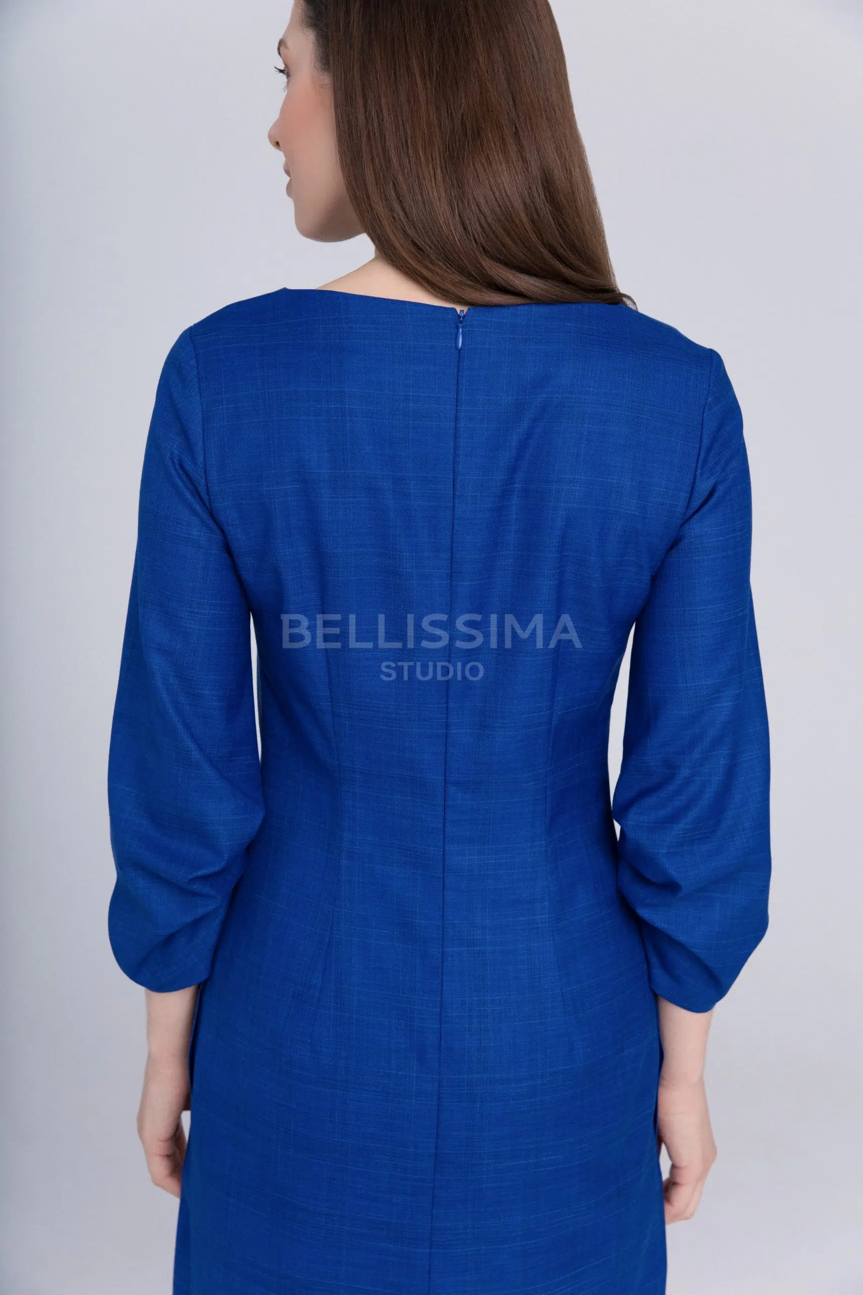 Платье полуприлегающего силуэта выполнено из эластичной, средней плотности костюмной ткани. Свободный силуэт и вытачки по бокам и спине обеспечат прекрасную посадку на любой фигуре.